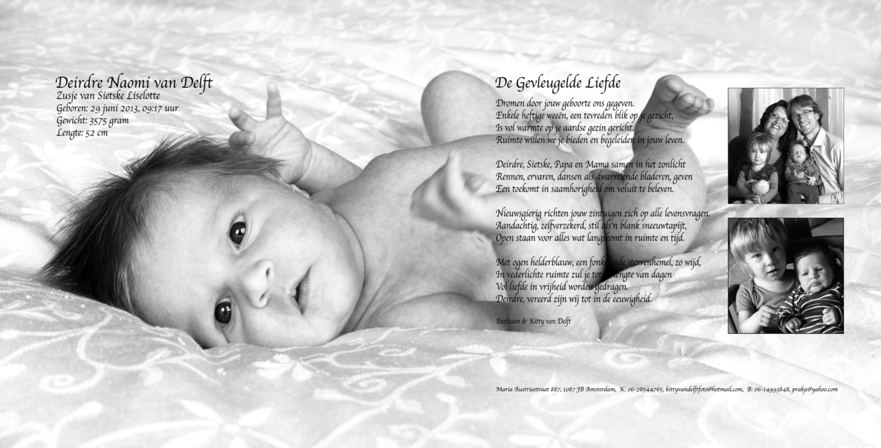 B geboortekaart Deirdre Naomi binnenkant: fotografie, ontwerp en realisatie Kitty van Delft