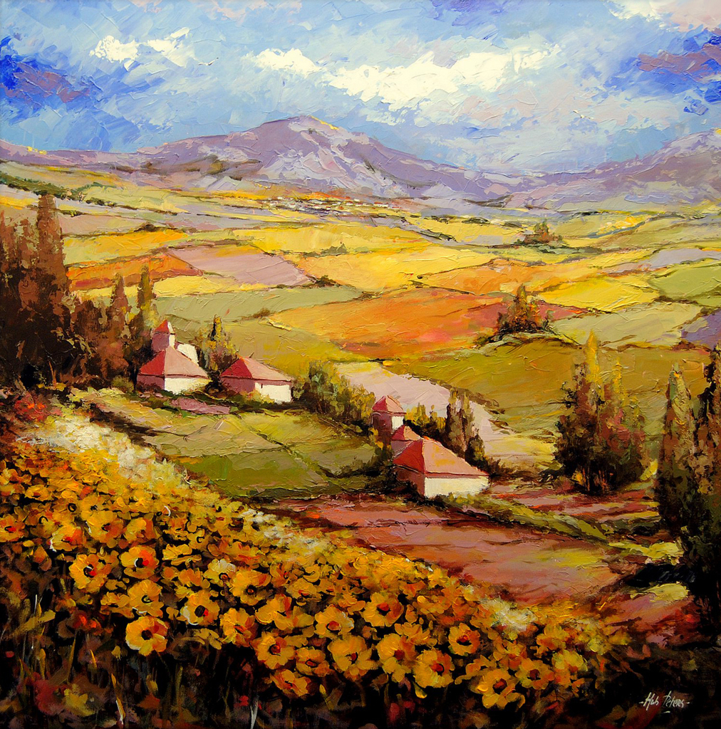De gepassioneerde schilder Hub Peters (1945) bezocht na zijn schooltijd de kunstacademie in Maastricht. Dit slechts korte tijd; hij vervolgde zijn opleiding aan de Hogeschool voor industriele vormgeving te Eindhoven. Hij was ruim 15 jaar werkzaam in de reclame en public relations. Tenslotte koos hij toch voor de vrije expressie: hij besloot van de schilderkunst zijn beroep te maken. Het succes bevestigde dat hij de juiste beslissing had genomen.