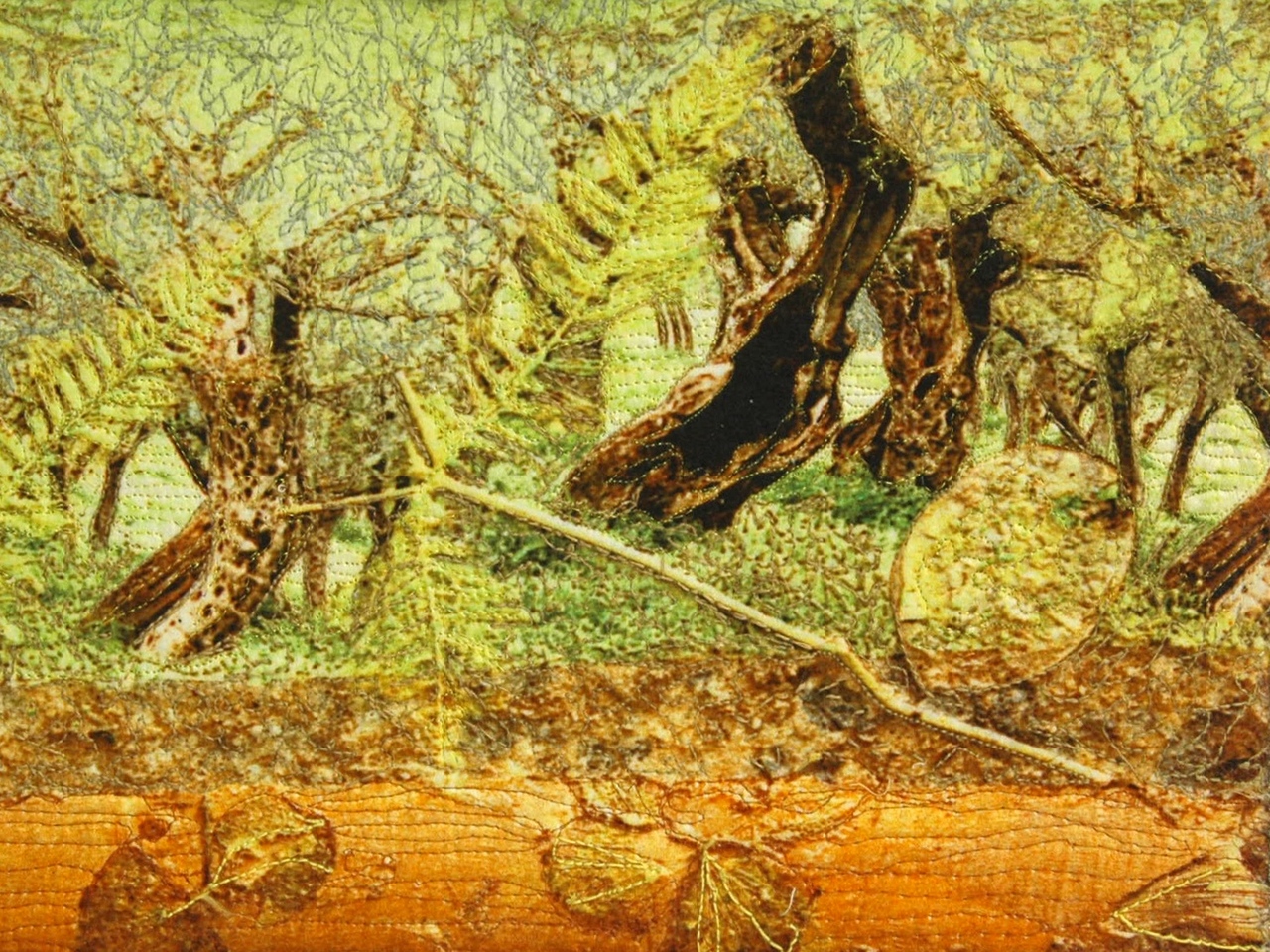 Ik ben een materialen mens, en maak samenvoegingen van verschillende materialen; foto’s, stoffen en borduursels, soms ook gecombineerd met hout, lood en steen, op wisselende formaten