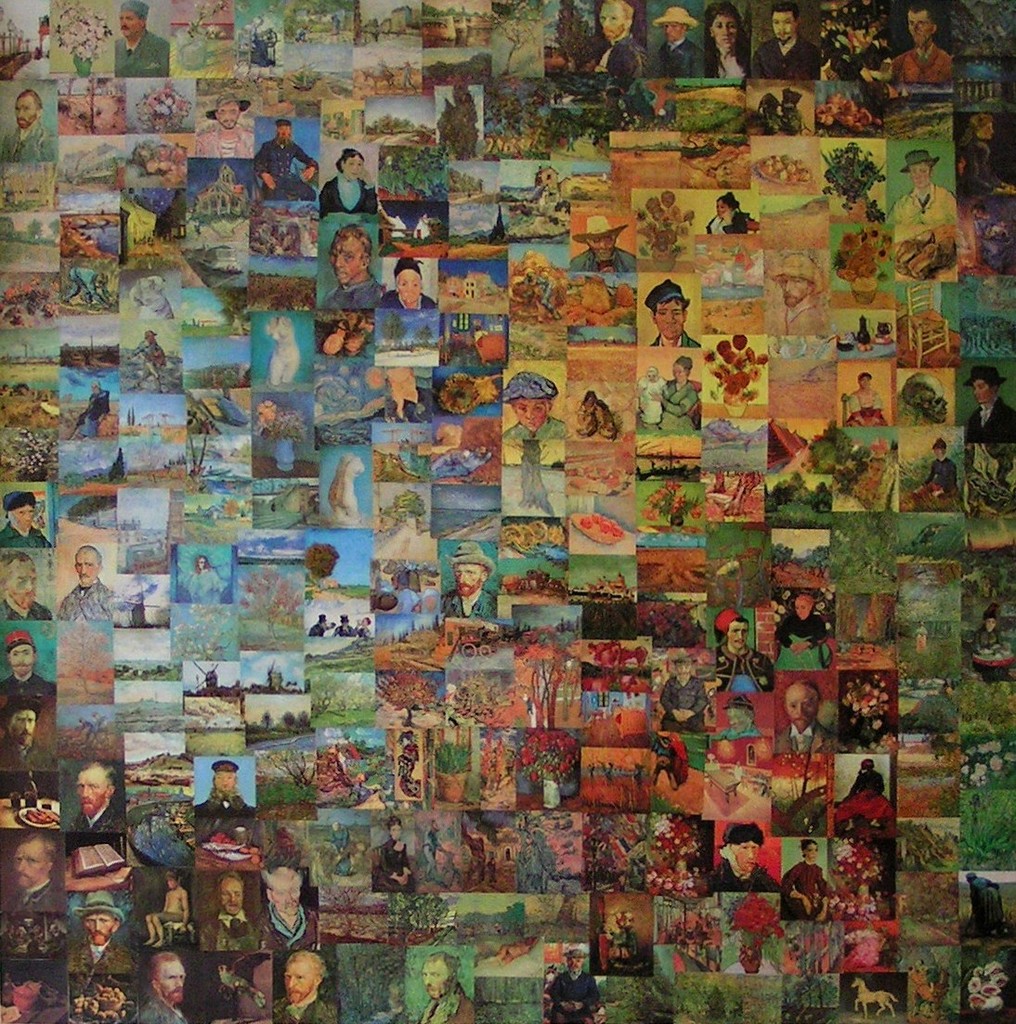 Collage op doek van afbeeldingen van werken van Vincent van Gogh (Taschen jaarkalender 2004).