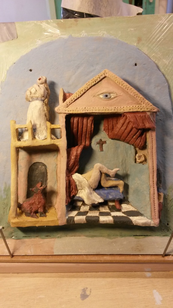 een tafereel uit de Decamerone, een relief geinspireered op Giotto