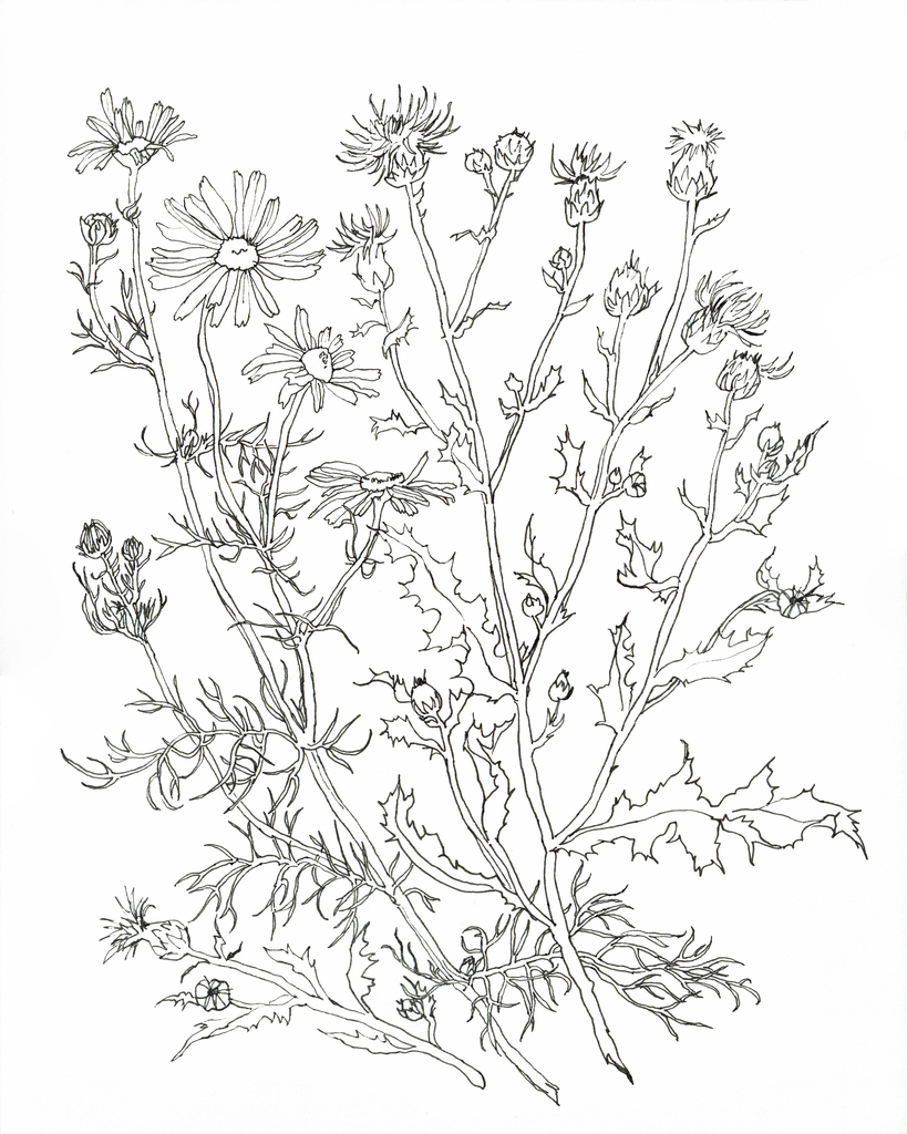 Wit Zwart Tekening Black White Inkt Drawing Nature Veldbloemen Distel Ink Thistle Kamille Wildflowers Chamomile
