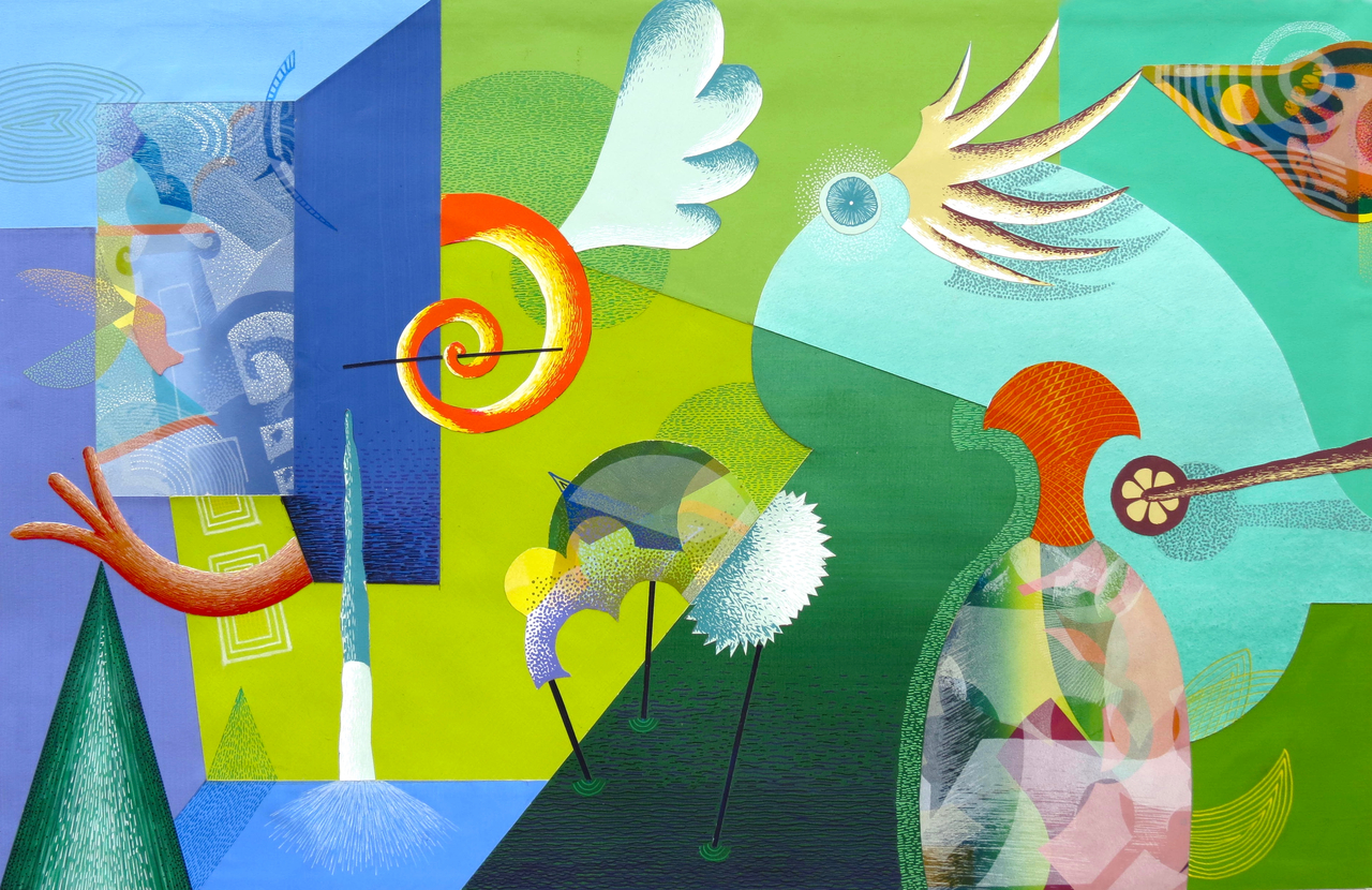 Ruimte met in onlogisch en logisch verband staande deels herkenbare figurenfiguren