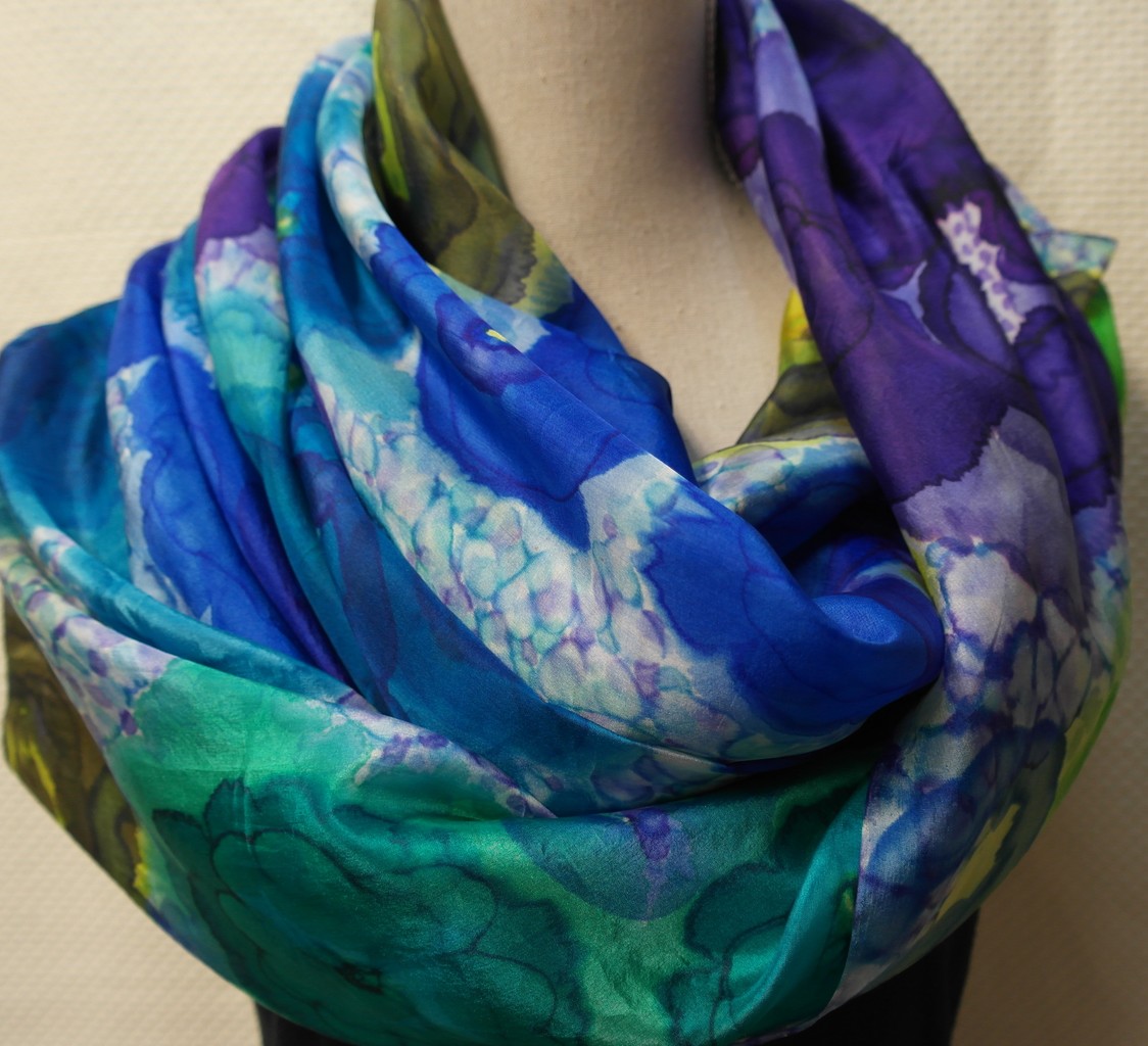 Grote groen blauwe dames sjaal van 100% zijden pongé, handbeschilderd. De zijdeverf is gefixeerd dmv stoom, waardoor de sjaal soepel om de hals valt. Blauwe zijden sjaal voor dames. | Etsy