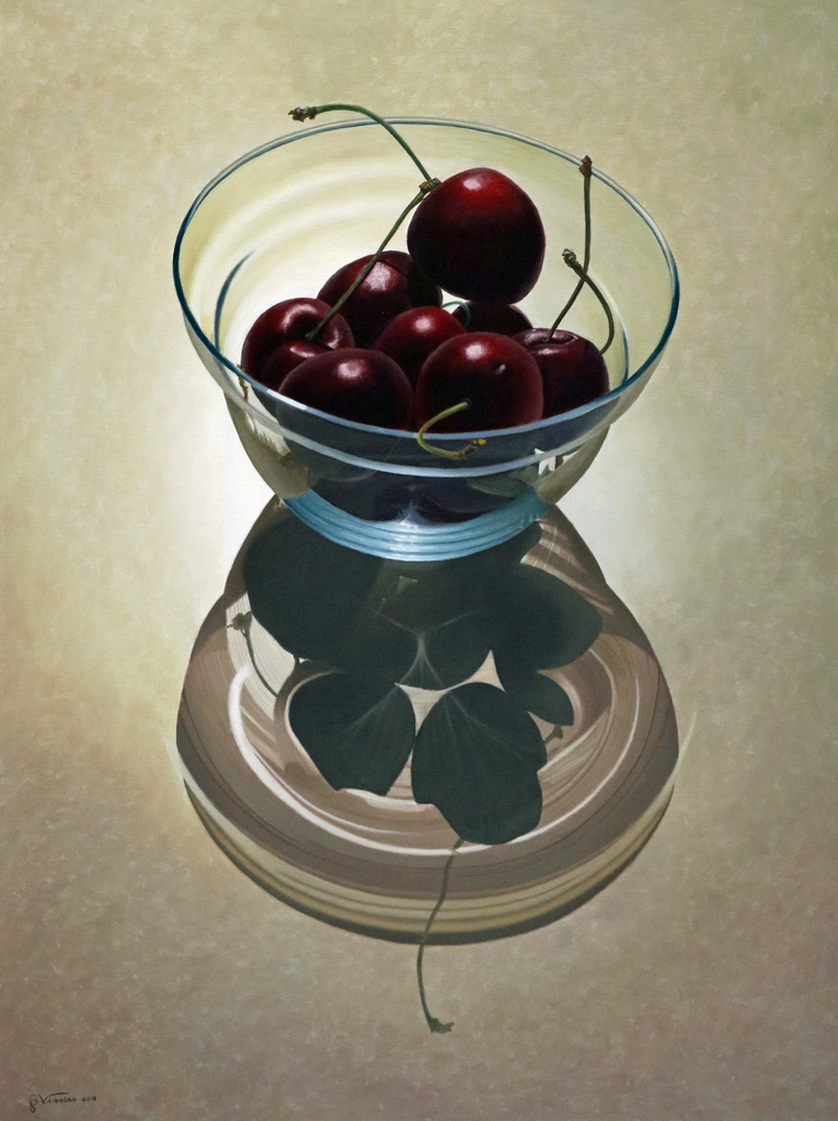 Schilderij Glas Licht Realistisch Painting Kersen Vissers Realistic Glass Bert Cherries Geertruid Bertvissers