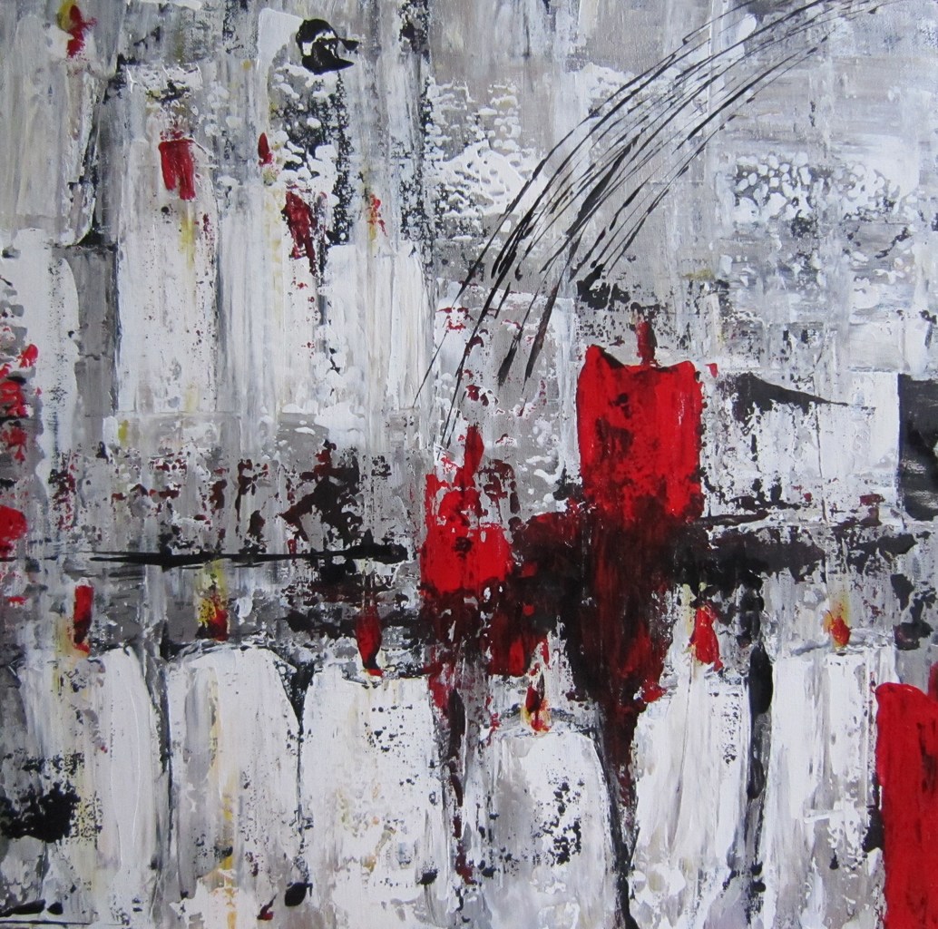 Kerst schilderij abstract rood/wit/zwart