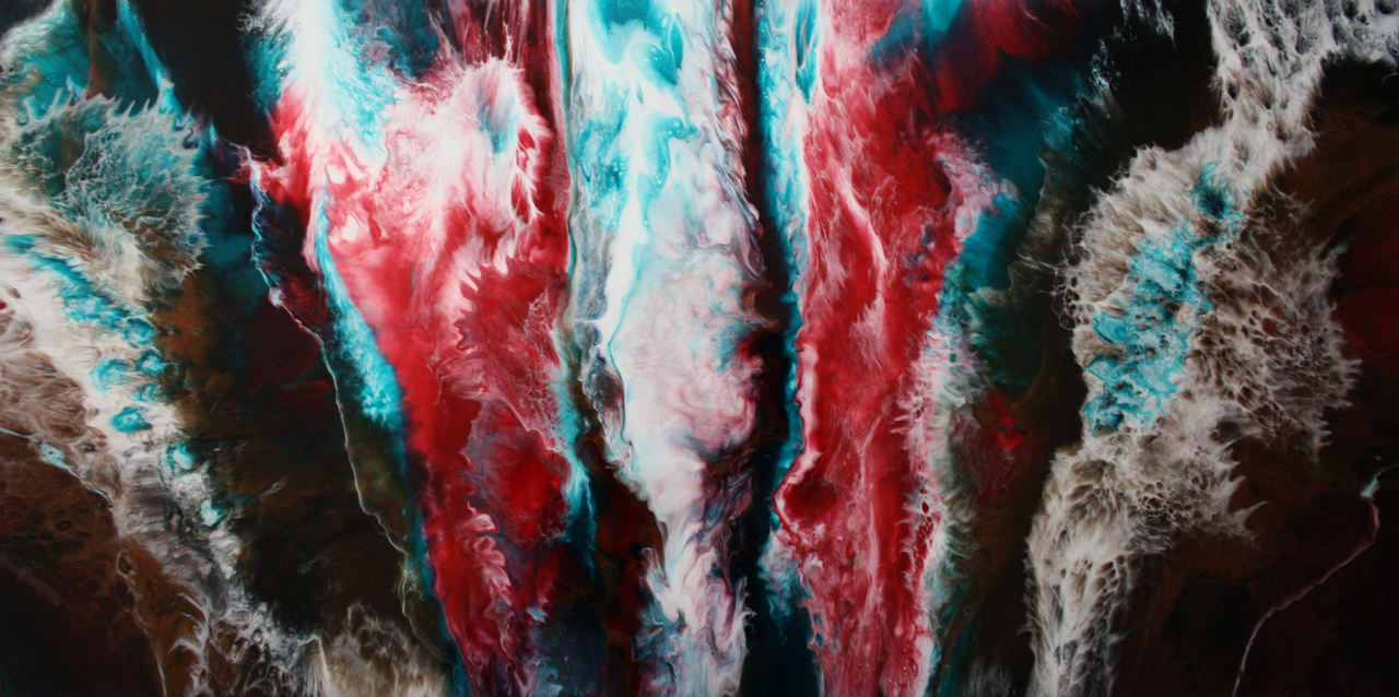 Golden red, abstract schilderij in onder andere felle rode, gouden en blauwe kleuren. Epoxy hars gekleurd met pigmenten op houten paneel. Door de epoxy heeft dit schilderij een enorme diepte en glans. Dit schilderij is naar keus verticaal of horizontaal op te hangen. Wilt u een foto zien waarbij dit schilderij in een interieur hangt kunt u op deze link klikken https://www.facebook.com/highglossepoxyart/photos/pcb.1211849872238114/1211845562238545/?type=3&theater