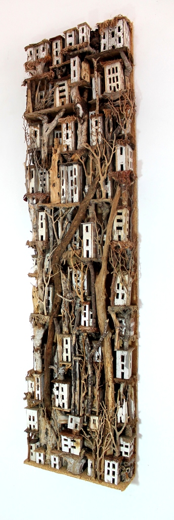 Ooit begonnen vanuit interesse in woonvormen zoals die over de hele wereld voorkomen, is mijn thema constant 'habitats'. Het huidige werk is altijd het resultaat van mijn fantasie.