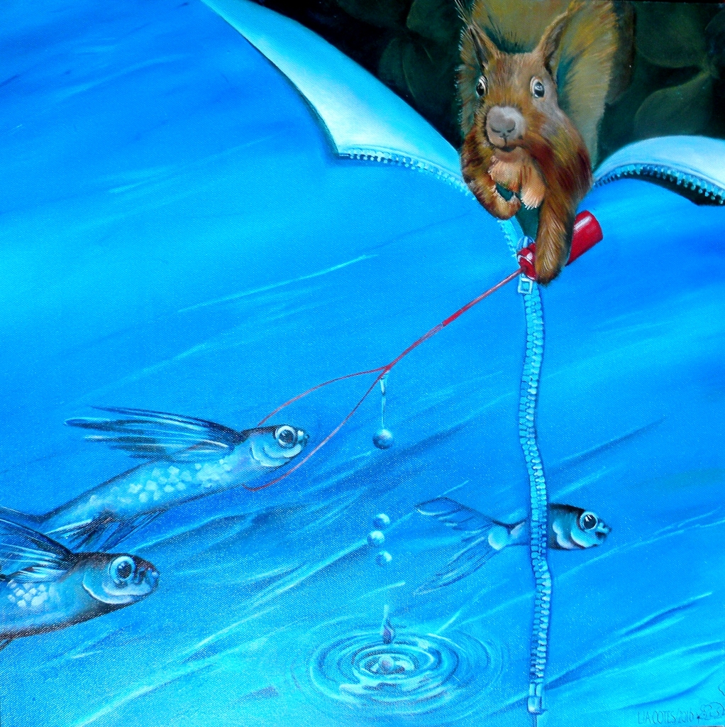 Blauw Groen Dieren Vis Olieverf Eekhoorn Vliegvis