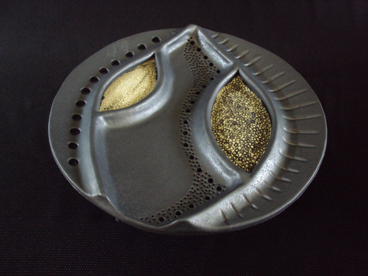 Schaaltje antraciet-zwart met decoratie op 3 pootjes.