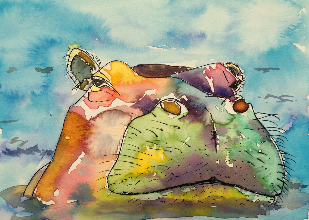 Water Kleurrijk Aquarel Waterverf Nijlpaard