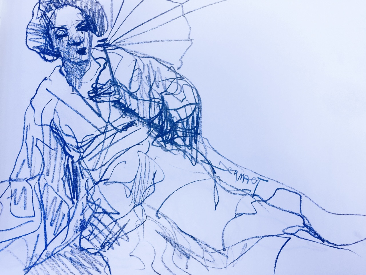 Tekensessie in de Japanse tuin met modellen in klaasieke kledij