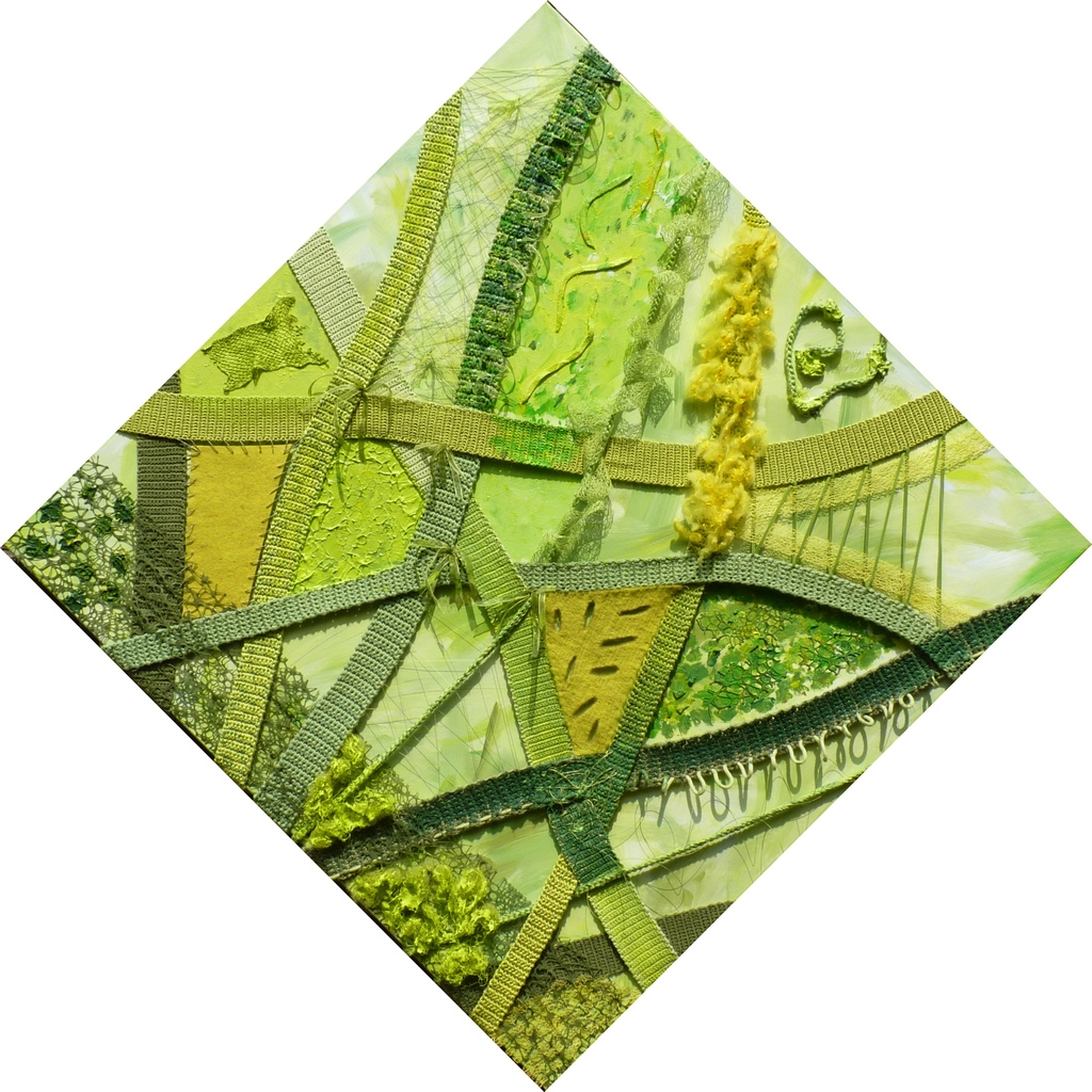 Het werk van Eesjen Ploeg bestaat uit intuïtief werk waarbij zij gebruikt maakt van gemengde technieken. Zij ziet een uitdaging in het combineren van technieken uit de toegepaste kunst met acrylverf, textiel en/of natuurlijke materialen. Kleur, vorm en abstractie kenmerken haar werk, zo krijgt de toeschouwer de vrije ruimte voor beleving. Haar inspiratiebronnen zijn de natuur en het ‘levensverhaal’ van haarzelf en van anderen, waarin zij het oude met het nieuwe verbindt.