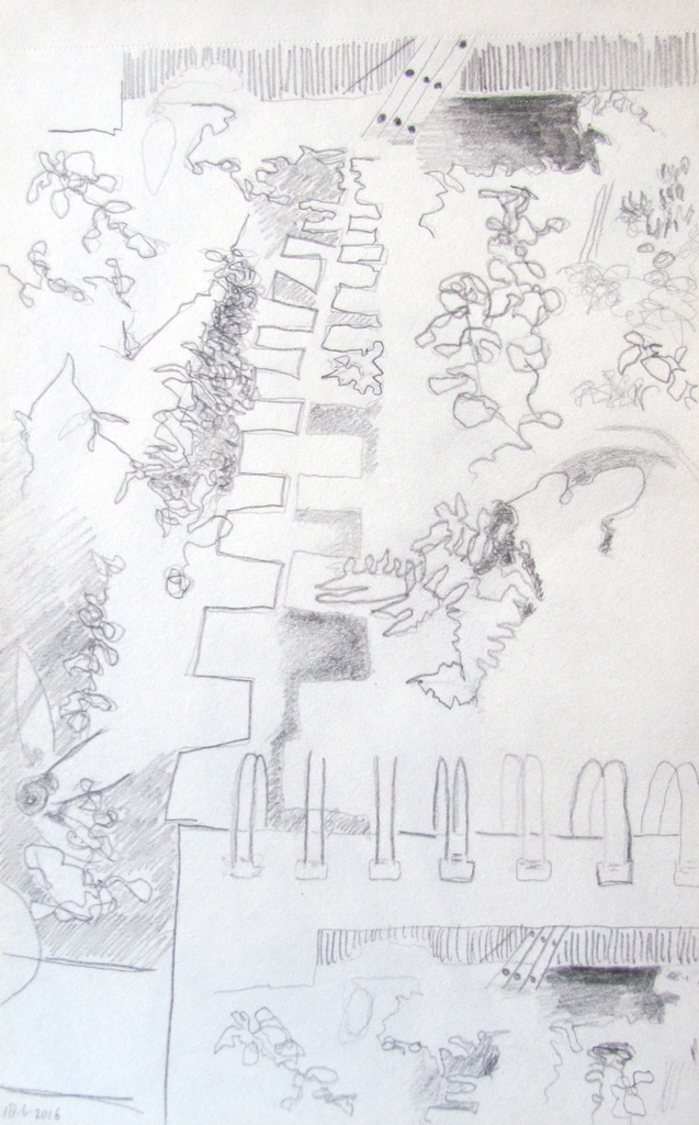Achtertuin met schetsboek.