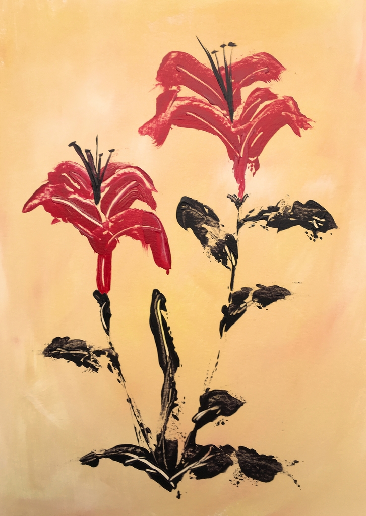 Figuratief Rood Acryl Papier Lelie Chinees