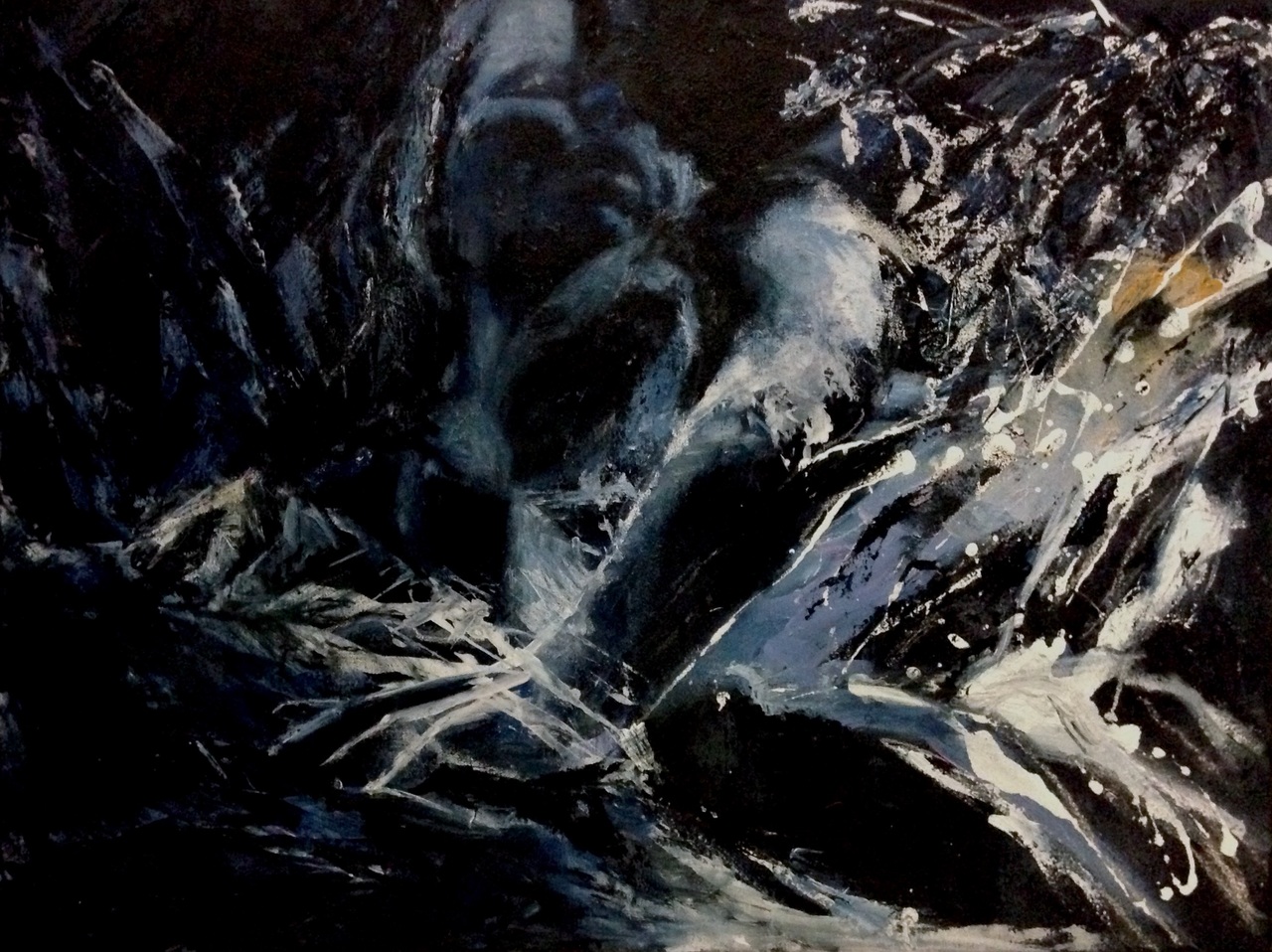 LichaamsLandschap Olieverf, acryl & conté op doek Vrouw en man is ijzig rotslandschap