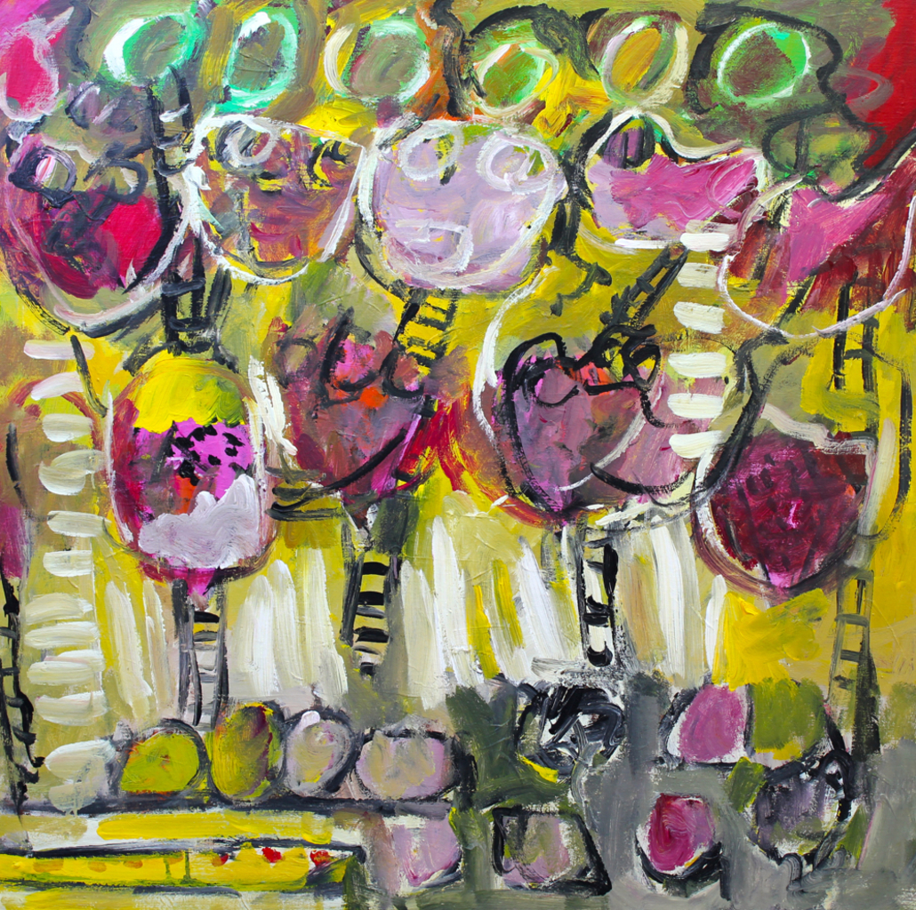 Mijn werken beschouw ik als muziek, voor de uitleg ervan zijn geen woorden nodig. Door middel van de vormen en kleuren vertelt elk schilderij een eigen verhaal. Een ieder die er naar kijkt kan er zijn eigen betekenis aan geven.