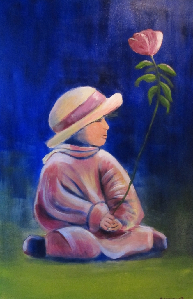 Hoe het kind op de grond zat vond ik wel apart. De roos heb ik er bijgeschilderd.