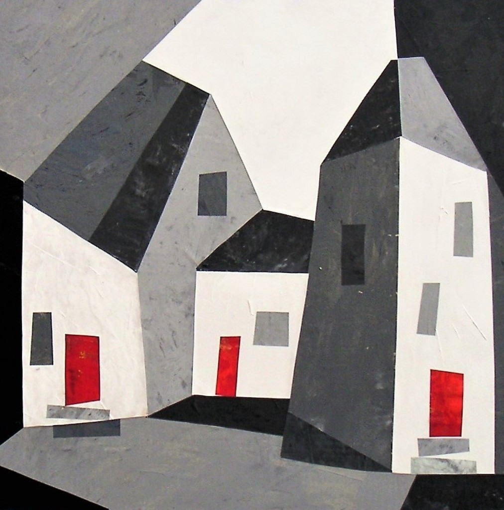 Abstract Acryl Geabstraheerd Samen Collage Huizen Monochroom Zwart-wit