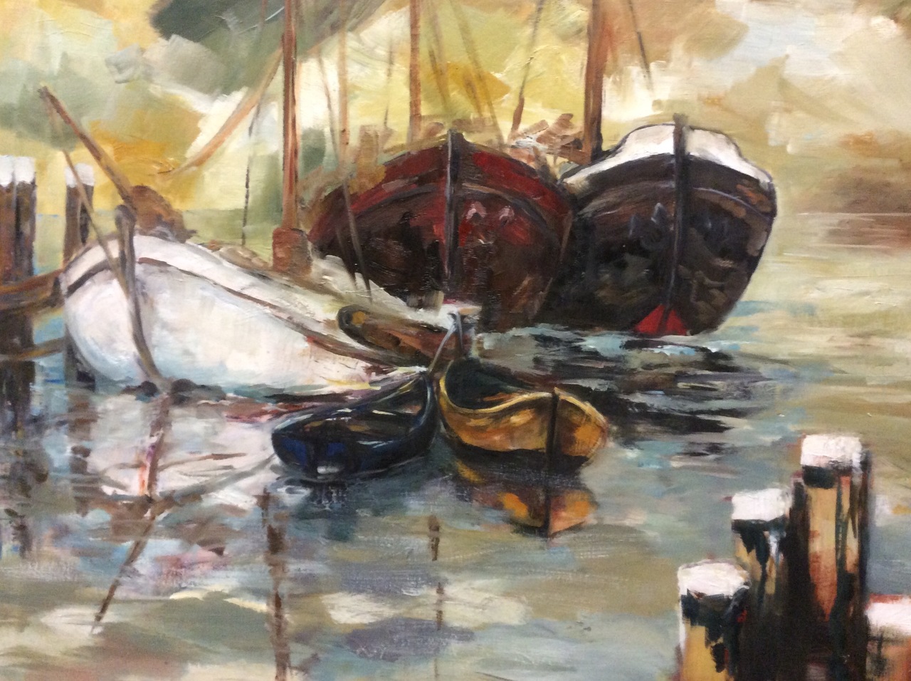 Jacolien 1950, (Frl), haar werk is figuratief en impressionistisch. Sfeer,harmonie,verlatenheid,inspireren haar om havens met schepen, landschappen en mensen te tekenen en te schilderen met acryl, olie verf, aquarel, houtskool, kryt, inkt.