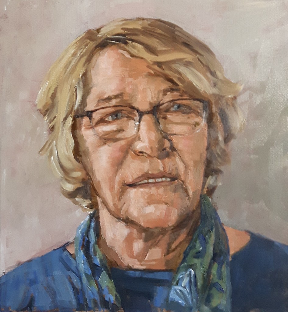 Ik kwam haar tegen in de supermarkt. We haalden herinneringen op van vroeger. Ik heb haar uitgenodigd in mijn atelier en hier het resultaat.