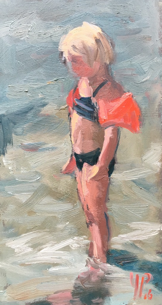 Zee Zon Strand Oranje Groen Kind Klein Water Geluk Zwemmen Lief