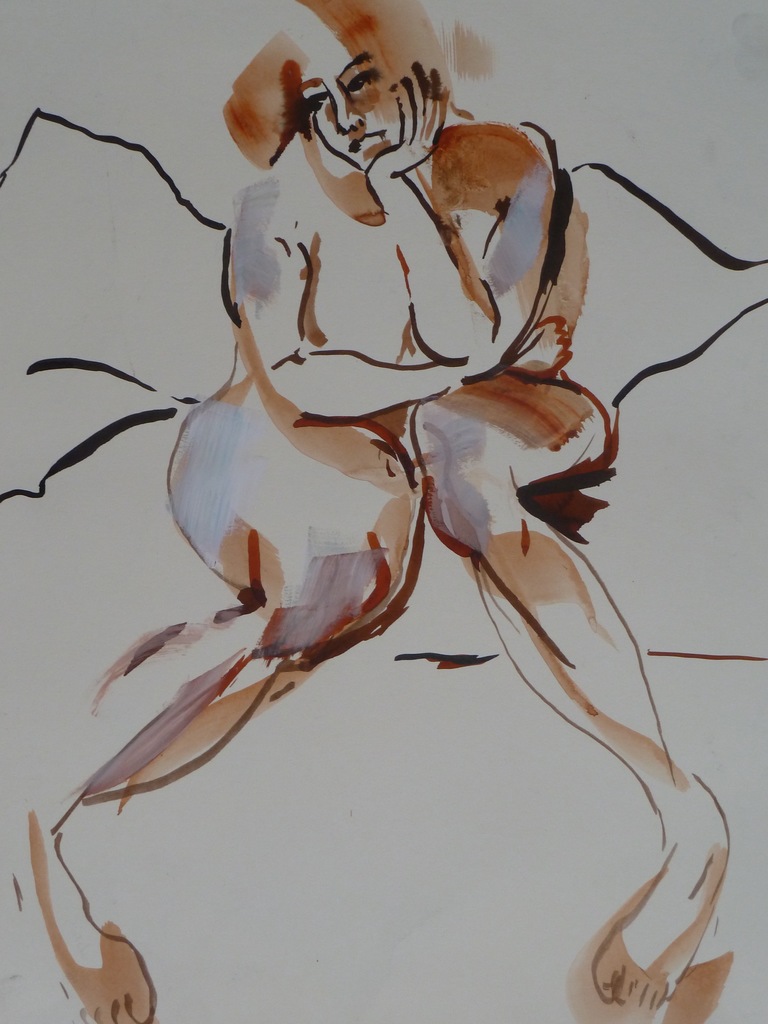 Snelle Schets Met Dunne Acryl Verf En Kryt