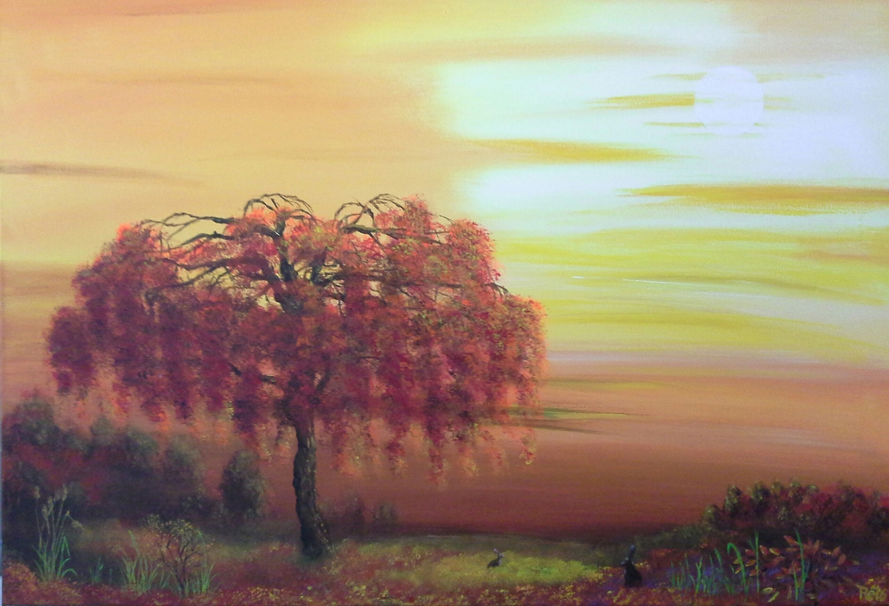 Acryl Kleuren Doek Bomen Acrylverf Herfst Boom Warme Tinten Konijnen