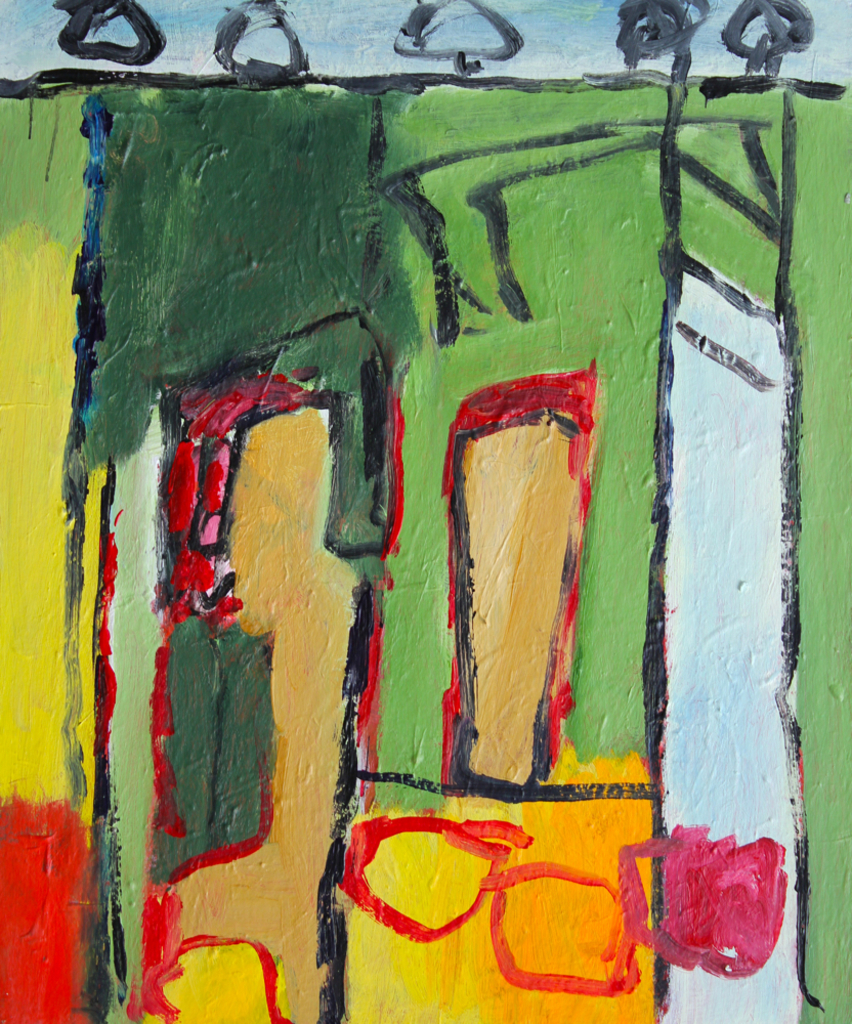 Abstract Modern Canvas Painting Acrylic Landscape Figurative Expressionistic People Colorful Surrealistic Original Composition Lyrical