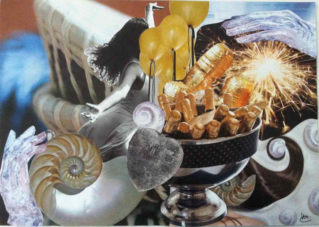 Ik maak papieren collages. Hiervoor gebruik ik tijdschriften, bij voorkeur de meer glossy uitgaven. Ik volg mijn intuïtie en gebruik mijn verstand bij het oplossen van 'problemen' in de verbinding van de papieren onderdelen.