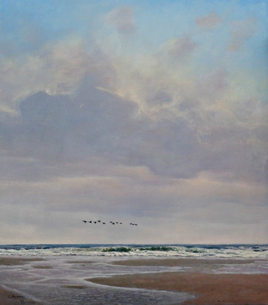 Strand Wolken Water Beach Clouds Ganzen Vlucht Nature Geese Northsea