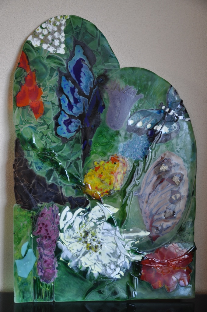Veelzijdig in mijn creaties van glas en glas in combinatie met keramiek en steen; keramiek en mozaiek van zelfgemaakte keramische tegels in vele kleurschakeringen; schilderijen in olieverf en acryl en gemengde technieken.