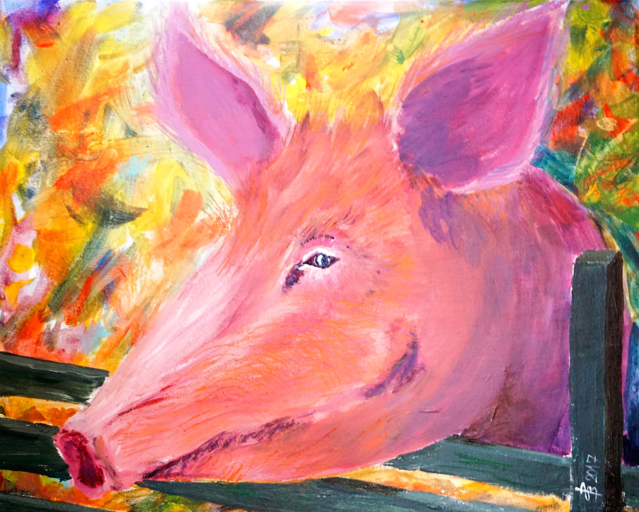 Gravend in mijn eigen foto's trof ik een varkentje aan... Ik had zin in wat vrolijks... Een 'feestvarken' dus... zijkant is beschilderd.