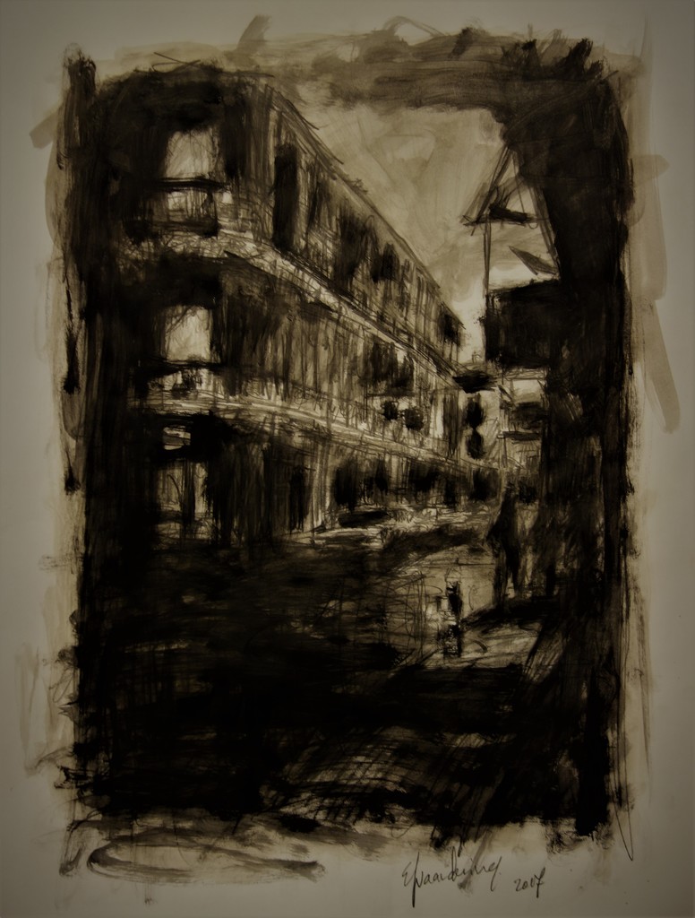 Erik-jan Vaandering Charcoal Tekening Houtskool Stadsgezicht