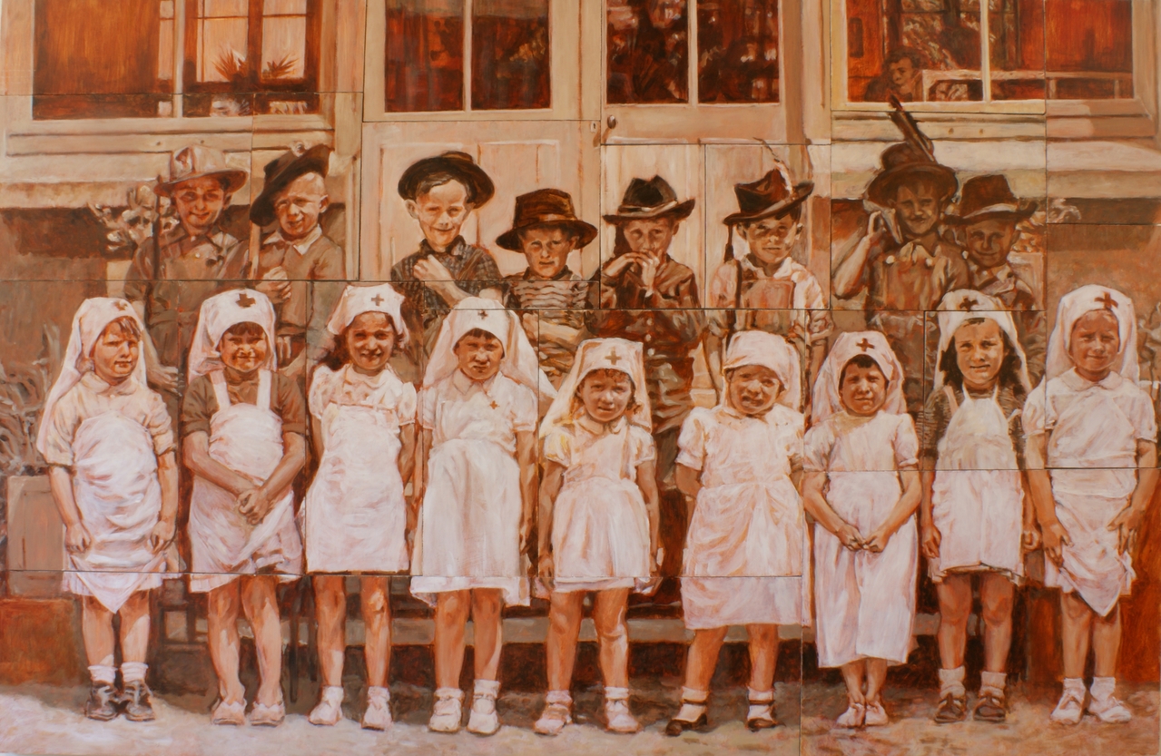 Dit schilderij is gemaakt naar aanleiding van en foto die Wim van Loon vond op een rommelmarkt in Frankrijk. Hoewel de kinderen allemaal min of meer uniorm gekleed zijn is het juist dit aspect dat hun onderlinge verschillen, hun individualiteit accentueert. Het schilderij is een samenstelling van meerdere kleine panelen, gecombineerd tot één schilderij.