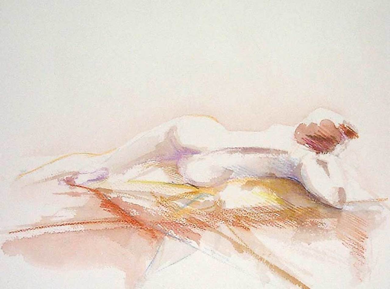 20040322 Ongekleed model in aquarel en kleurpotlood