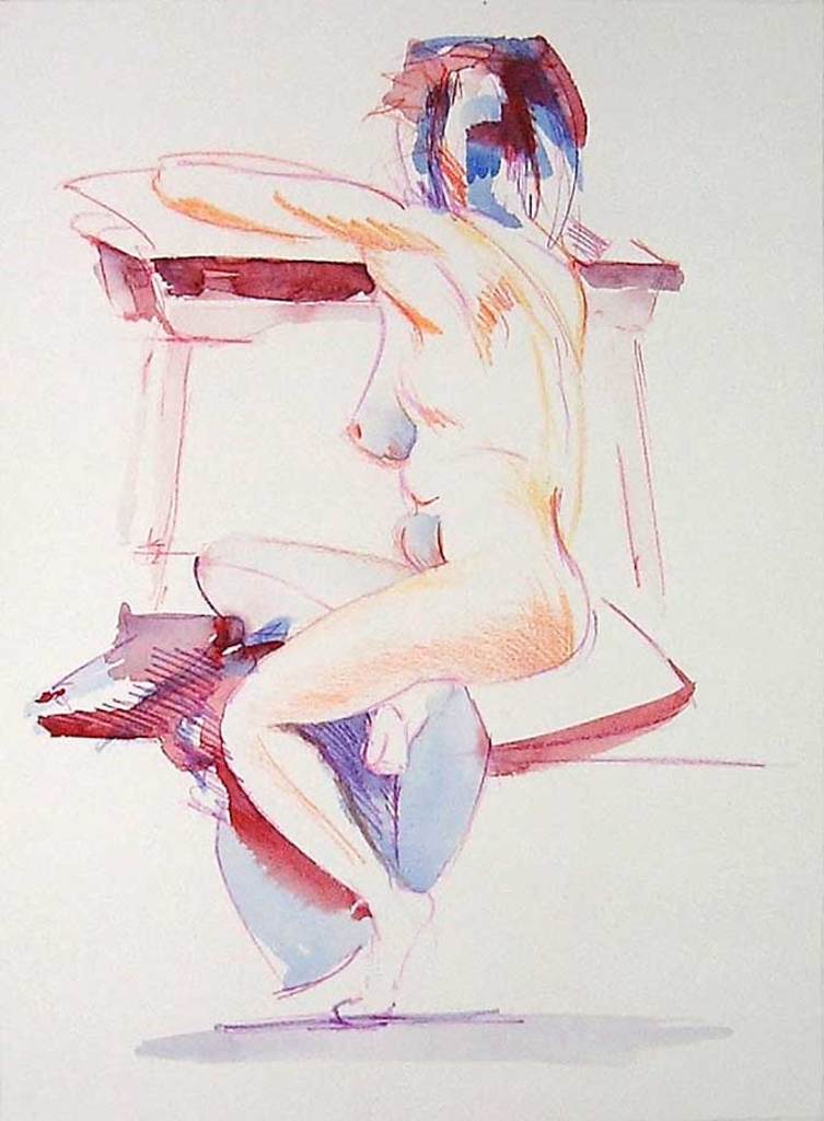 20031027 Ongekleed model vrouw in aquarel en kleurpotlood