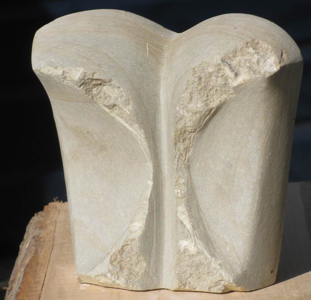 Veelzijdig torso. Uitgevoerd in speksteen, onafgewerkt.