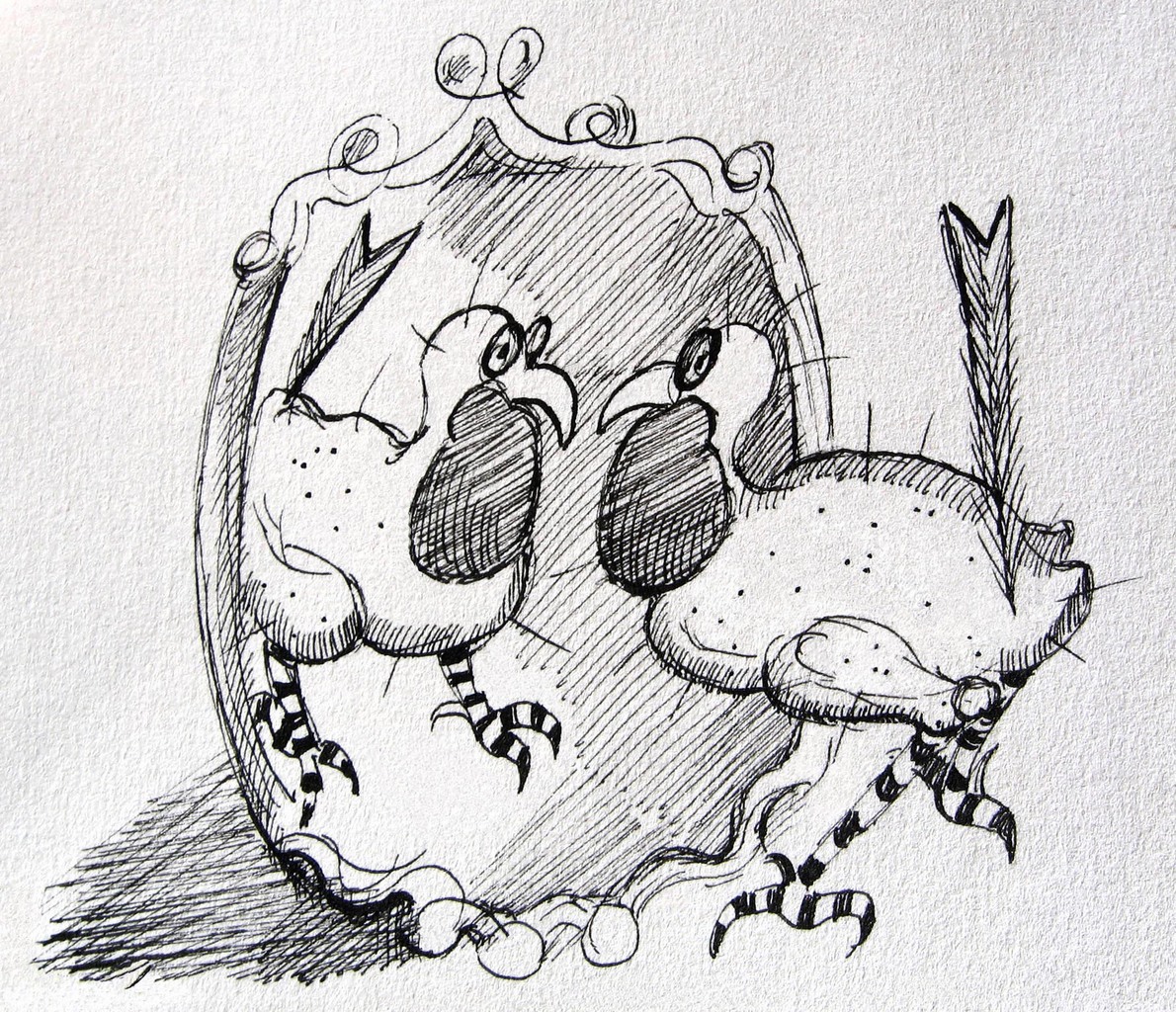 Kalkoen ziet een 'Kale Koen' in de spiegel. Hij zat te dicht op de kaarsjes.