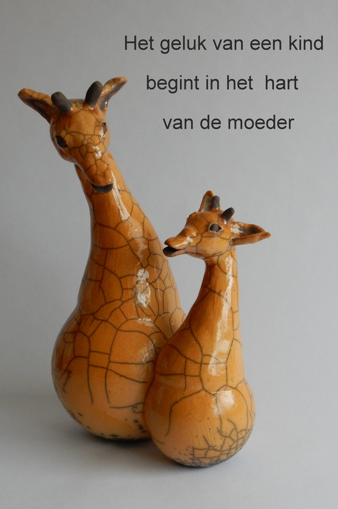 Griraffe Moeder en kind Moeder giraffe heeft de maten 30 H - 15 Br - 13 D het Kind heeft heeft de maten 21 H - 14 Br - 10 D
