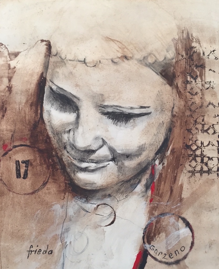 Ik woon en werk in Noord Italie,in het bergdorp Garzeno boven het Como-meer. Mijn schilderijen kenmerken zich door een combinatie van figuratie en abstractie. Grafische elementen, foto's, tekst,collages van stukken krant vormen een essentieel onderdeel van de totale compositie.
