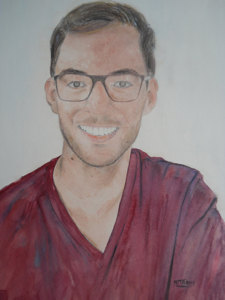 Welkom op de website met tekeningen en schilderijen van Nico Tromp. Ik ben geboren in Santpoort-Noord. Op enkele korte cursussen en workshops na ben ik autodidact. Hoewel ik vroeger al veel tekende ben ik pas veel later, vanaf 1999 weer echt serieus gaan tekenen en schilderen. De aquarellen die ik maak zijn vaak licht van kleur en textuur. De portretten zijn gemaakt met zacht potlood op wit papier of geschilderd als aquarel of met gemengde techniek. Met vriendelijke groeten, Nico Dit is een portret van Adrianus Tromp, getekend met zacht polood. Hij is de jongste broer van mijn vader en in de zomer van 1944 op 17jarige leeftijd verdronken tijdens het zwemmen in het Noordzeekanaal.