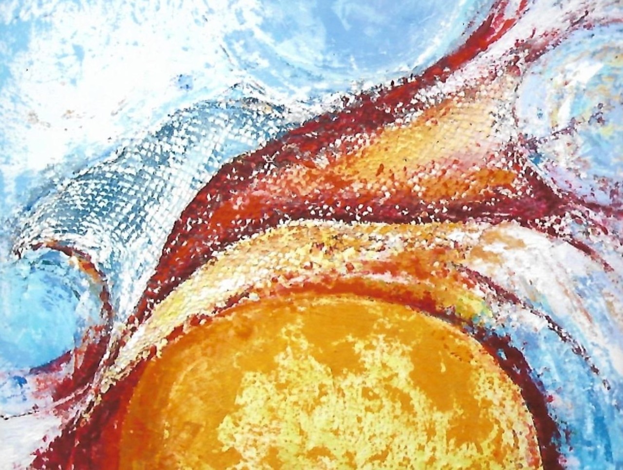 Schilderen met acryl en paletmes. Meeste schilderijen ontstaan vanuit innerlijk beeld, indruk of tekst.
