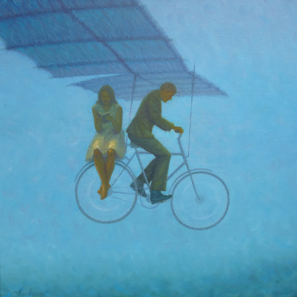 Na het voltooien van een grafische opleiding en jarenlange zelfstudie is Theo Leering sinds enige tijd full time werkzaam als beeldend kunstenaar. Zijn stijl valt moeilijk in één hokje te plaatsen maar is altijd figuratief. Het beweegt tussen realistisch en absurdistisch en is vaak melancholisch van toon. Achter deze melancholie schuilt te allen tijde een sprankje hoop. De thema’s lopen sterk uiteen al speelt muziek in veel van zijn werk een belangrijke rol. In principe kan alles wat op zijn netvlies verschijnt, hoe klein of ogenschijnlijk nutteloos ook, dienen als idee voor een schilderij. In opdracht maakt Theo portretten en muurschilderingen. Daarnaast geeft hij een aantal dagdelen per week les in tekenen en schilderen.