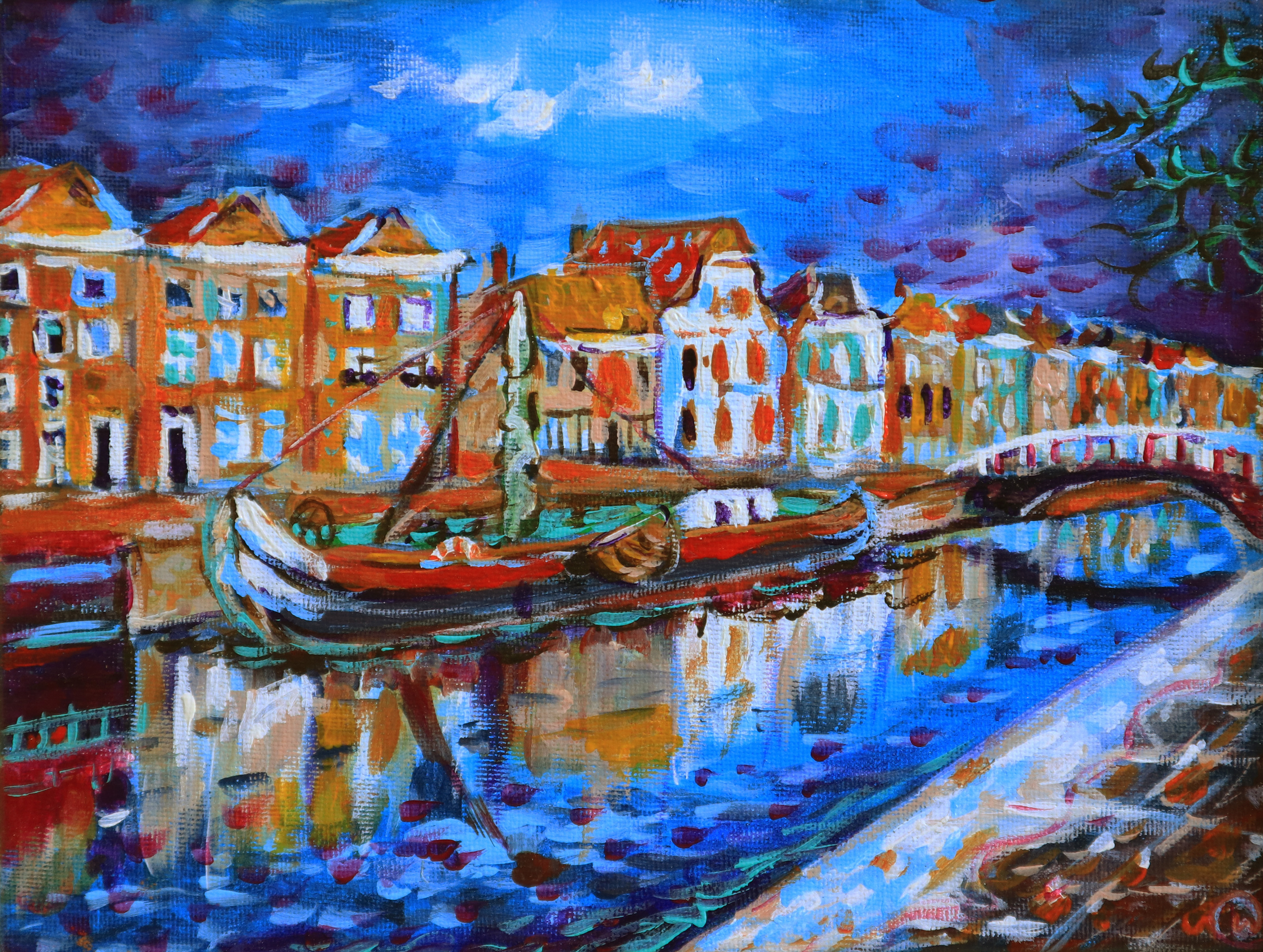 Wiet (Wieteke Hendrikx) laat zich leiden door kleur. De kleuren die zij ziet én de kleuren die zij wil zien. Zij schildert herkenbare stadstaferelen en natuurgezichten.