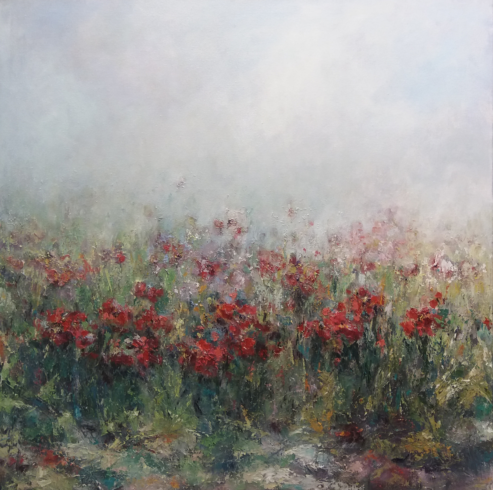 Schilderij Bloemen Kleurrijk Olieverf Natuur Kleur Zomer Voorjaar Verjaardag Rozerood Bloemenveld