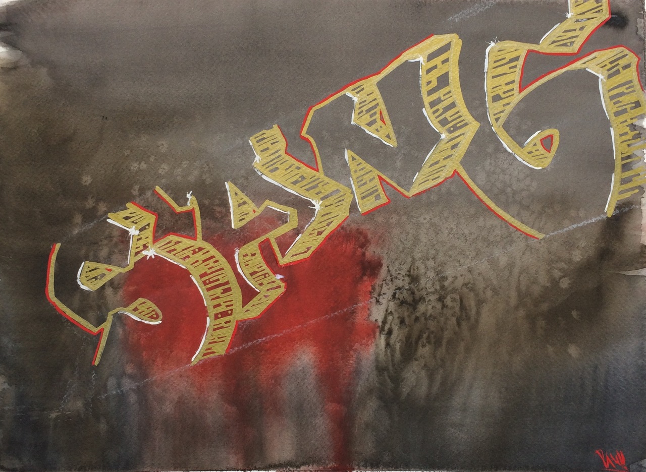 Graffiti Letters Kleuren Goud Aquarel Bloed