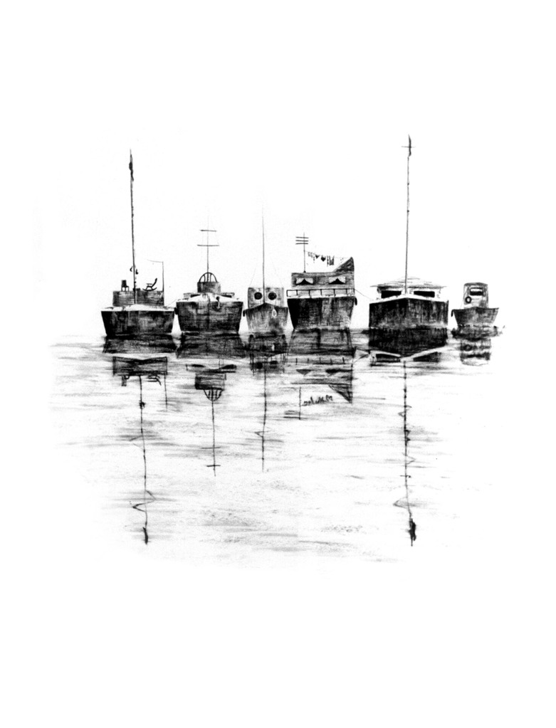 Bootjes frontaal gezien, gezellig naast elkaar. Levertijd 4 weken.