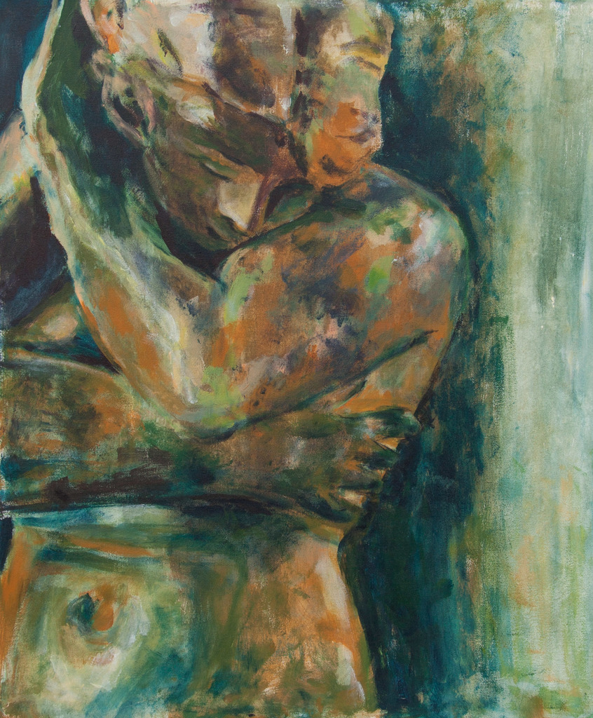 Schilderij Acryl Vrouw Naakt Beeld Mens Mensfiguur Groen Brons