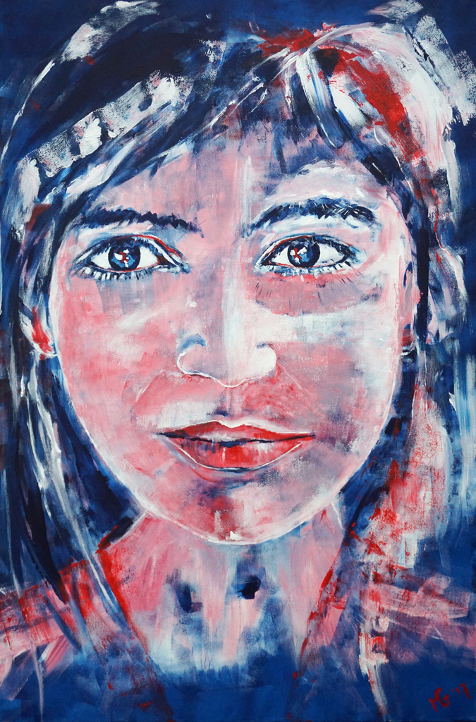 Margareth Groot (1960) Hoogwoud, Mensen, lange reizen door Azie, sfeer, kleuren, maar ook de omgeving om haar heen, inspireert haar tot het maken van vaak kleurige schilderijen. Spelen met kleuren, het liefst op grote doeken, met verfrollers, acrylverf, en (altijd voorhanden) de eigen vingers, wat meditatief kan werken. Soms laag over laag, wat verrassend relief kan brengen. De ene keer een doel voor ogen (b.v. meteen opdracht), maar vaak ontstaat er spontaan iets.